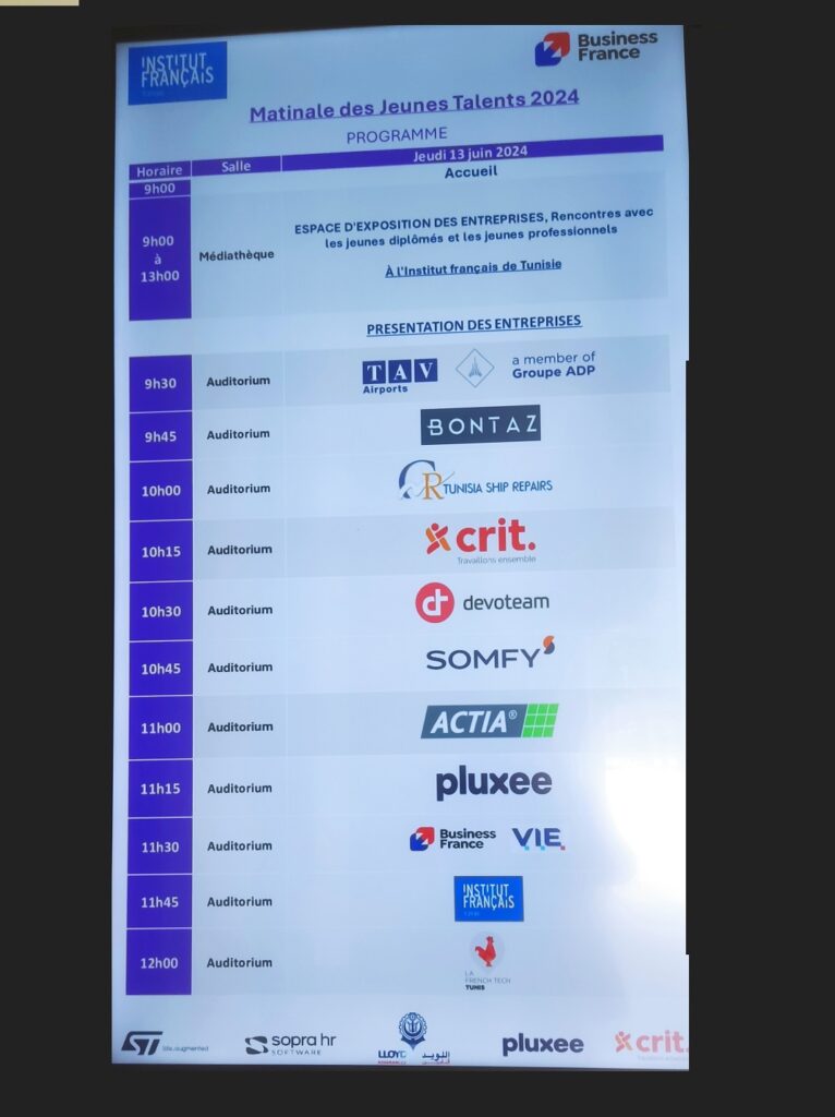 Cette matinale est co-organisée par Buisness France et l’Institut Français de Tunisie et en lien avec la deuxième édition des « rencontres RH & transformation digitale » destinées aux directeurs des ressources tunisiens, qui a eu lieu mercredi dernier à Tunis.
